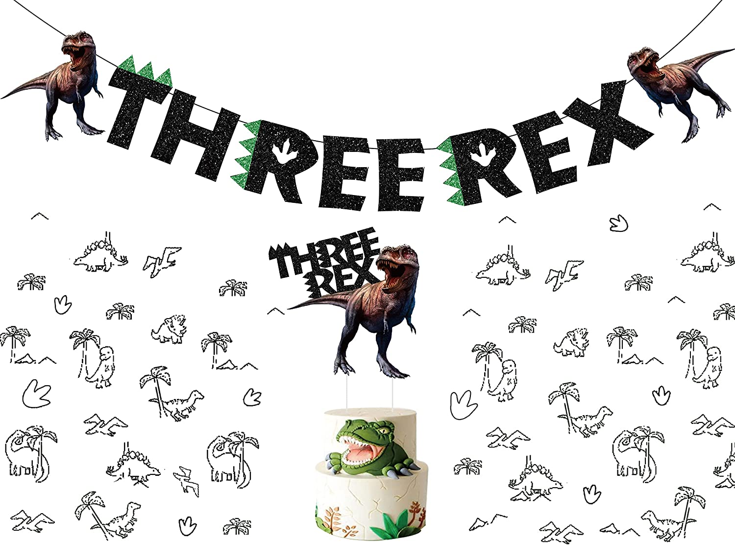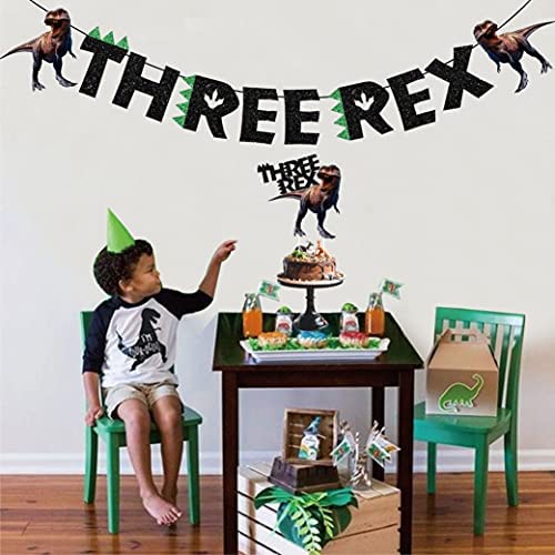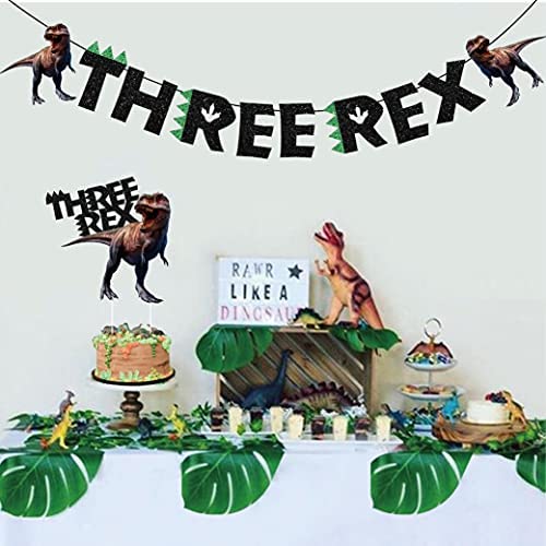 Dinosaur 3rd Birthday Decorations Three Rex Banner for Boys 3 Year Old Birthday Party Green Black Jungle T-Rex, Roar, Realistic Dinosaur Theme Party Supplies