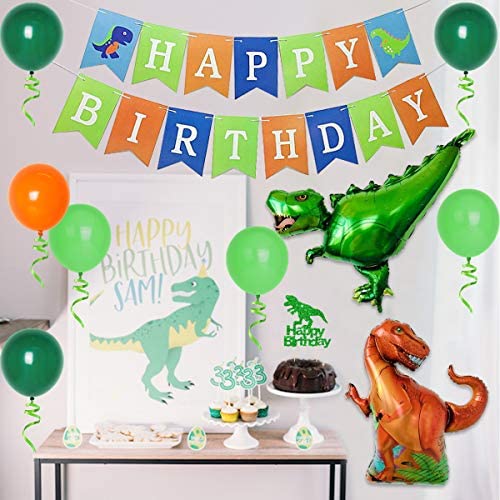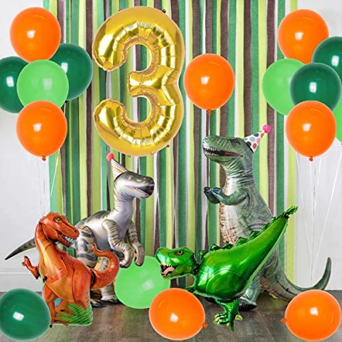 Dinosaur Birthday Decorations for Boy Three Rex Birthday Decorations Dinosaur Party Supplies 3 Year Old – Three Rex Balloons Dino Cake Topper Happy Birthday Banner