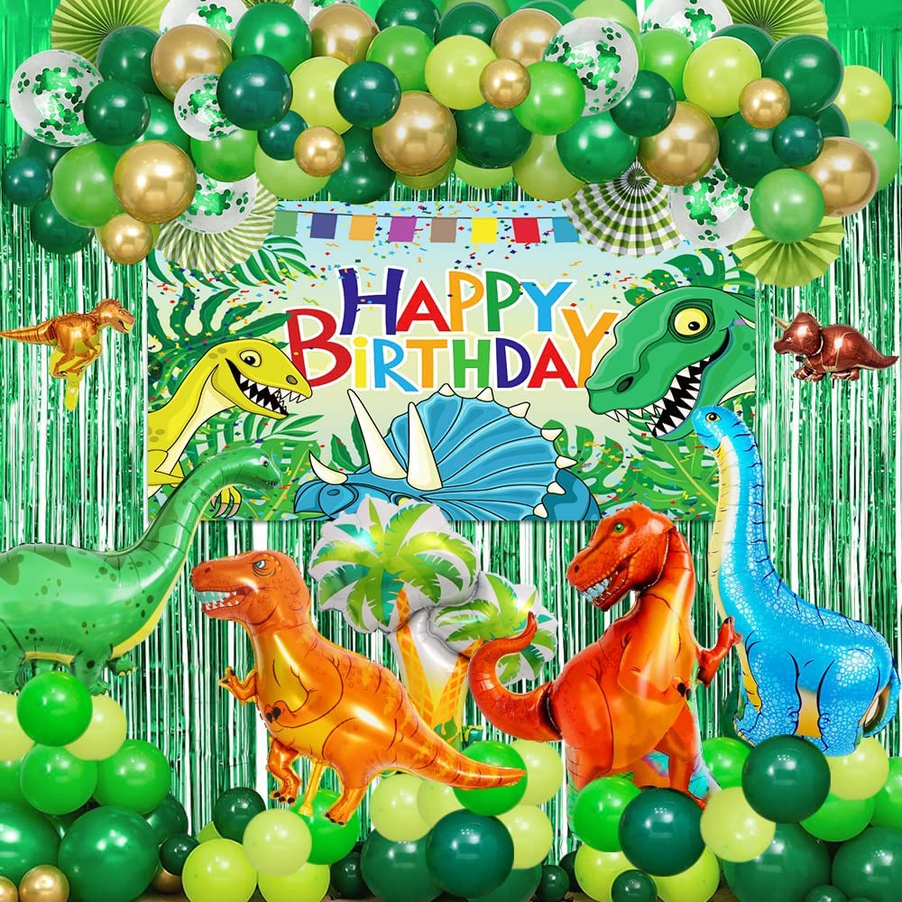 Dinosaur Birthday Party Supplies, Dinosaur Party Decorations for Boys & Girls, Kids Green Birthday Decorations Included Dinosaur Balloons, Backdrop, Paper Fan, Curtains