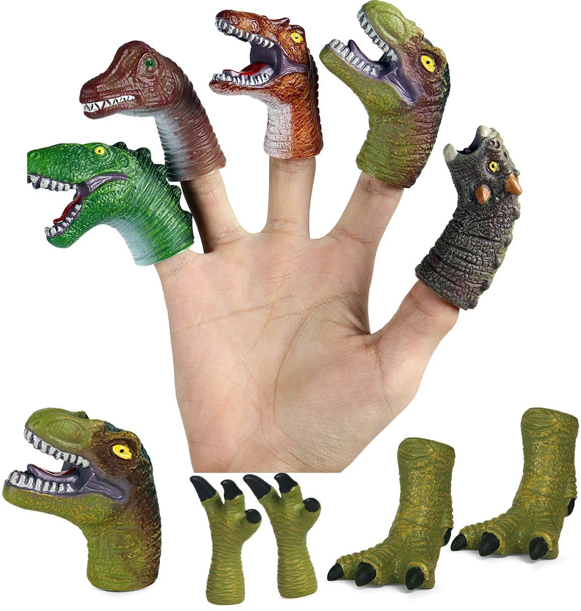 Dinosaur Finger Puppets 10 PCs Animal Bath Dinosaur Head Figure Finger Toys for Party,Christmas Tree Decoration,Cosplay Treasure Box Prizes, Pinata Fillers and Goodie Bag Fillers
