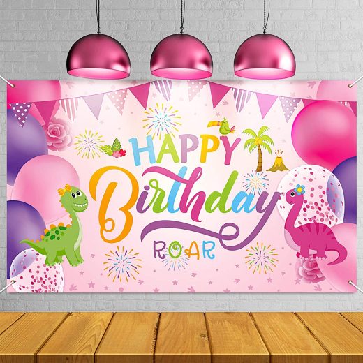 Beautiful dinosaur themed birthday party supplies: pink dinosaur birthday decorations for girls birthday, oh it’s a girl party; Ideal for friend gathering, boy birthday party, baby shower, arcade party, little princess party Dinosaur birthday banner using way: available to hang at the entrance of birthday party, house outside wall, over gift table as girl birthday party tablecover tablecloth; Pink birthday balloon banners are also great for displaying outdoors to welcome your birthday party guests as they arrive Reusable and durable girl dinosaur birthday banner decoration: made of quality polyester, can be fun birthday photo backdrop for multiple times; Foldable, convenient to store and organize after every time usage Special girl dinosaur sign: designed with cute dinosaur elements, birthday balloons, etc., easy to matched with pink swirls, oh it’s a girl table centerpiece, pink birthday party; Suitable for birthday scene setting poster and booth props, welcome sign, birthday table decorations, bring you memorable and impressive experience Birthday photo booth props size: 70.8 x 43.3 inch, come with 236 inch long hanging rope, each corner of the birthday photography banner has a metal grommet, easy to attach the ropes to the banner, you can hang them on the living room, bedroom, party room wall, patio, stage background, etc.