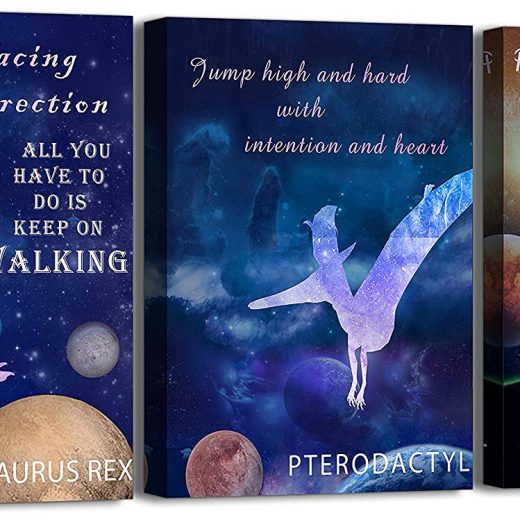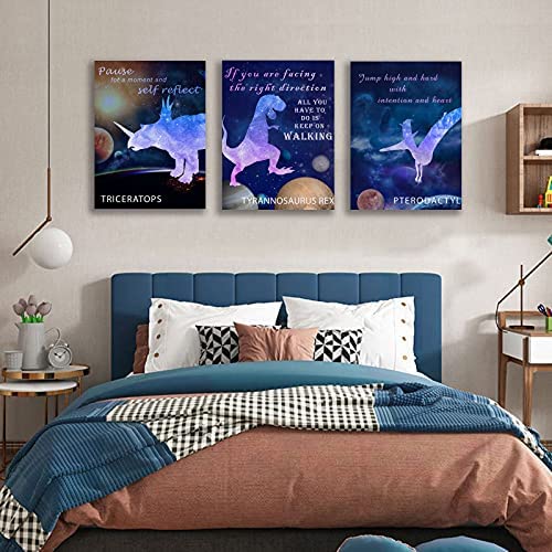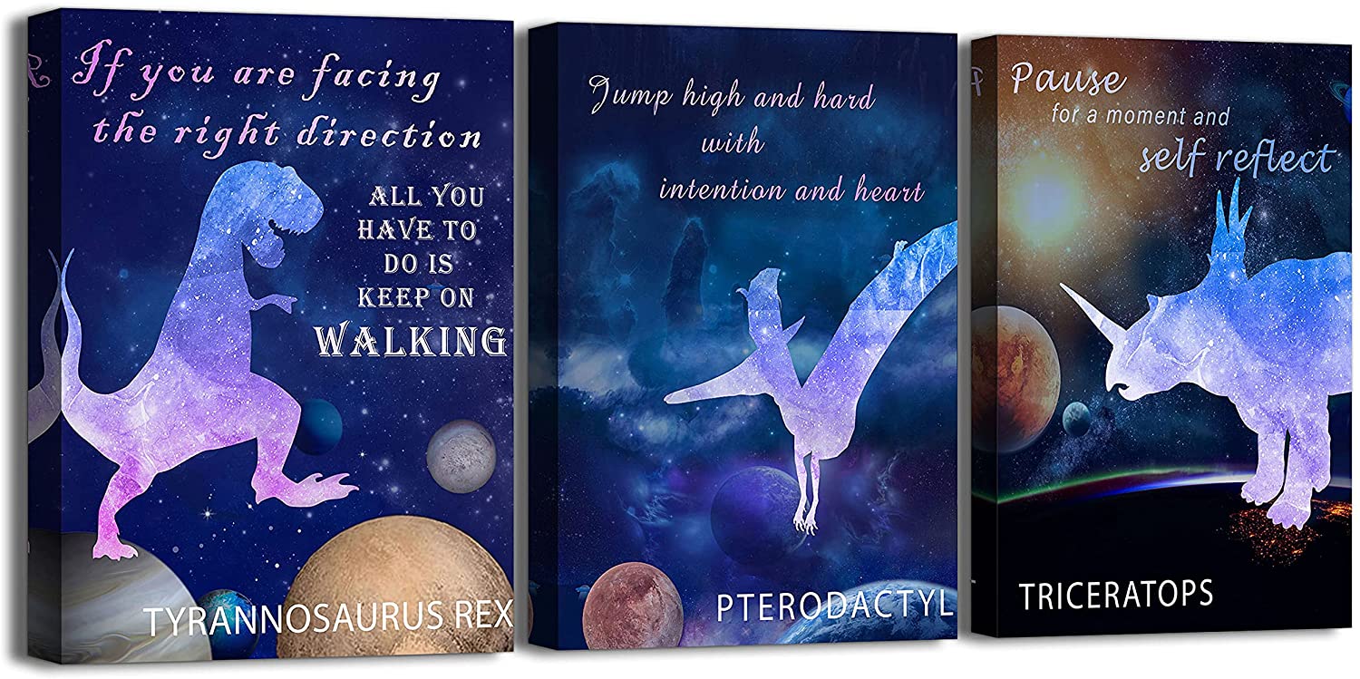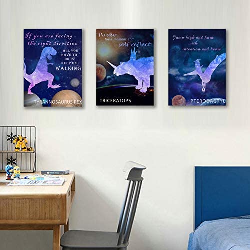 Dinosaur Room Decor for Boys Outer Space Wall Art with Frame for Kids Bedroom Decor Galaxy Outer Space Themed Wall Decor In 3 Pieces Aesthetic Animal Picture Poster Toddler Canvas Wall Decals 12×16 Inch