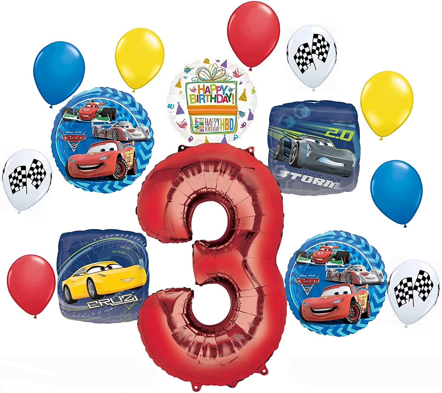 Cars Party Supplies Lightning Mcqueen 3Rd Birthday Balloon Bouquet Decorations 15 Pieces