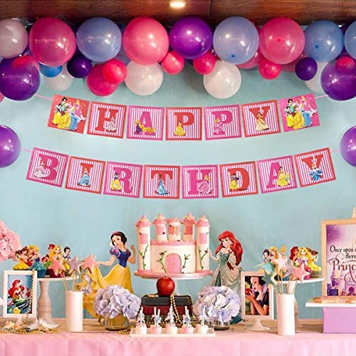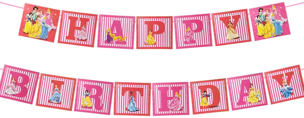 Disney Princess birthday banner, Disney Princess theme party decoration supplies, childrens birthday party decoration.
