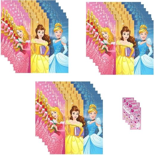 Disney Princess Party Supplies Bundle Pack includes 48 Lunch Dinner Napkins and 4 Princess Sticker Sheets (Not Disney Princess stickers).