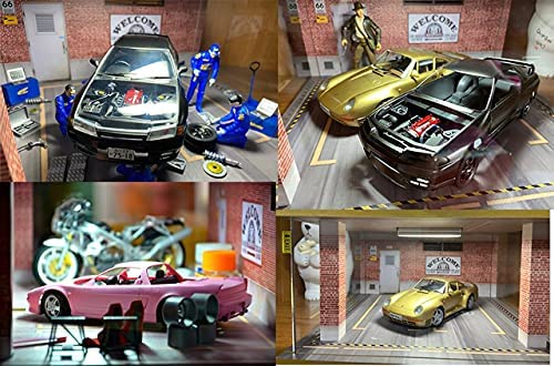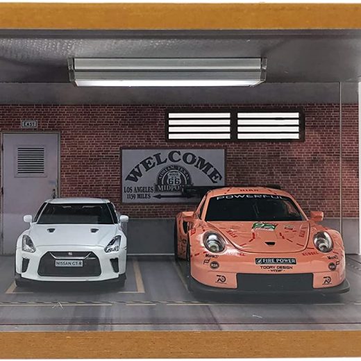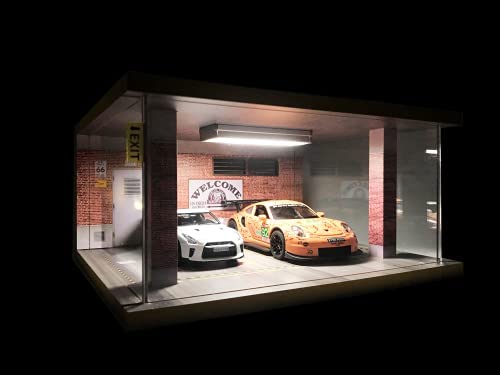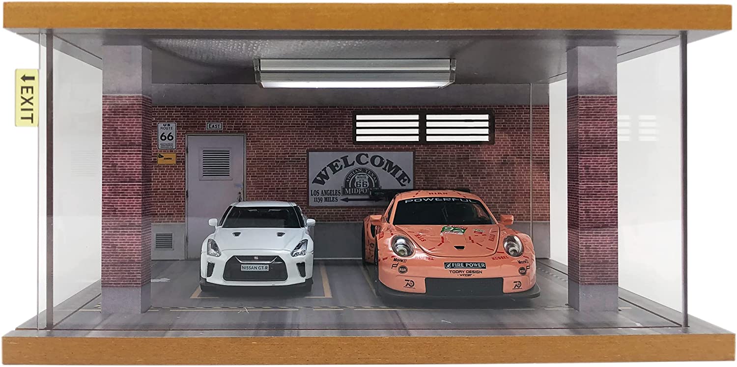 Display Case for 1/32 or 1/36 Diecast Cars,Acrylic Display Case Toy Motorcyle with LED Lighting,2 Parking Route 66