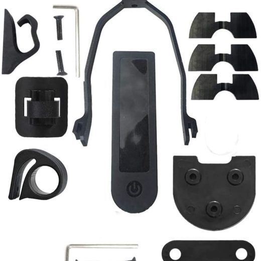 The accessories included in this product kit solve the problems that are often encountered in electric scooters. 1- 3 Piece Damping Gasket designed to measure to avoid the slack of the handlebar, to avoid crunches and a better adjustment and pressure in the fold of the axis. Includes 3 measures: 0.4mm 0.6mm and 0.8mm. It may be necessary to adjust the screw in the part that closes the shaft so that it can be closed with the part inside. Rigid PLA material to provide maximum pressure on the shaft once closed, the most effective material tested by more than 3000 customers. 2- Practical front hook designed and resistant to carry bags in your scooter easily and safely. Advanced model with greater resistance than the rest. 2 longer screws are included so that the piece is perfectly adjusted. 3- Fender Fixed Bracket support for the rear fender. Eliminates the possibility of the LED cable touching the wheel and also eliminates the free movement of the remaining fixed. It is necessary to disassemble the in a simple way by removing the 3 screws that are available to install the piece. 4- Kickstand Foot Support Sleeve Cover of flexible material for the Kickstand. It prevents the metal from being damaged by touching directly with the ground and avoids the noise caused. 5- Display Panel Protective Case case with logo and power button for the top. Protect the screen and top button from rain and scratches. Package include 1 X Front Hook 1 X Install Tools( 5 x screw + 2 x screwdriver ) 1 X SPACER FOR REAR FENDER 1 X Waterproof Display Panel Protective Case 3 X Damping Gasket 1 X Kickstand SPACER 1 X Cable Fixed Organizer 1 X Folding Wrench Fastener