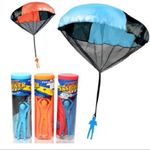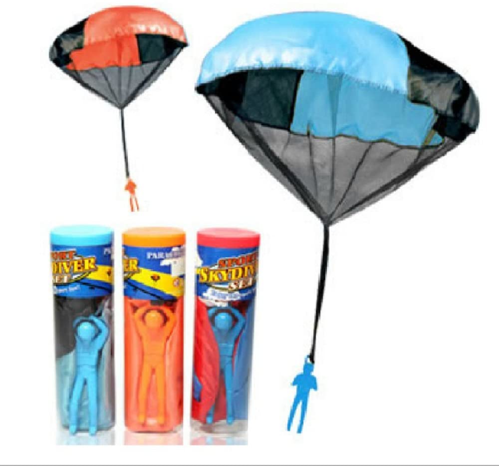 The worlds finest Tangle Free Toy Parachute as stated by thousands of our customers!Roll the parachute up, throw the parachute high, and watch it falling down slowlyAdjust the straps to control the direction of the descentLoad the Skydiver into the tube, then a quick throwing motion sends your Skydiver flyingGet out of the house and have fun outside with the Base Jumpers!Specifications:Material: Cloth, plastic and nylonUsage: Outdoor toy for child 3+years oldSpread length: 55cmUmbrella Flat diameter: 45cmCarabiner Dimension: 5 x 1.7cmSoldier size: 9.5 x 3.3cm Package Size: 4.5 x 15cmWeight: 0.035kgPacking Included: 1 x Parachute1 x Package Color random: Blue, Pink,Orange,Green