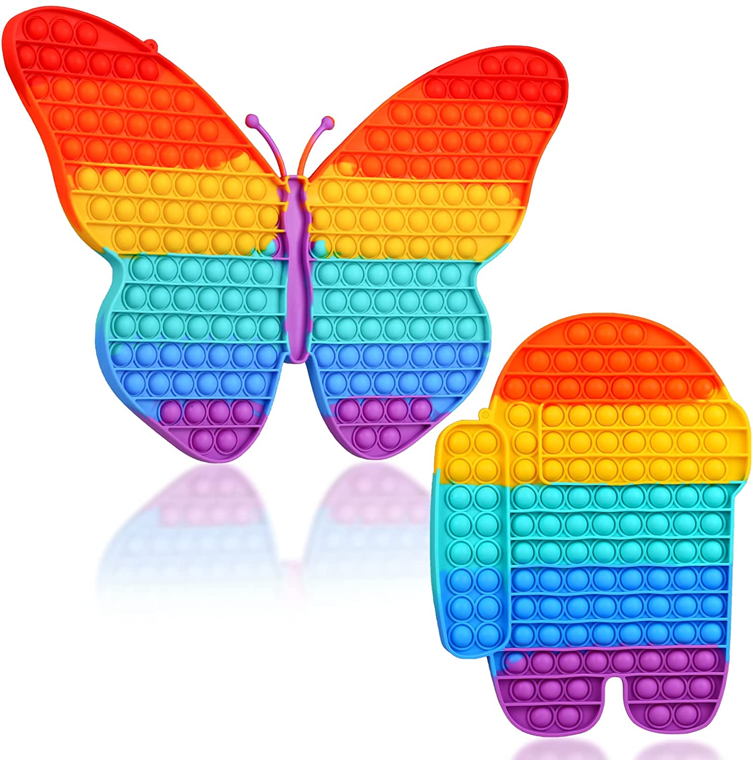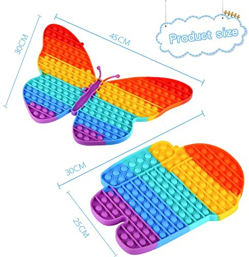 BIGGER SIZE AND POPULAR COLORS – 2 pieces big size pop push bubble fidget sensory toy with popular rainbow color, the larger size makes each game more exciting. In the course of the game can focus, relieve stress and anxiety, and exercise logical thinking and mental arithmetic ability. GREAT WATY TO RELAX OR KEEP BUSY – By pressing each bubble, its good for easing anxiety and stress, helps concentration, and establish a stable mood. This magical bubble popping sensory toy is perfect for those who always need to keep their hands busy or keep their brains focused, and also suitable for people with ADD, ADHD, OCD, autism or anyone with high working stress. HIGH QUALITY MATERIALS – Our push & pop fidget toys are made of high-quality silicone materials, non-toxic and odorless. These toys are safe for children and suitable for all ages. The bubble fidget toy is soft and durable, and can be repeatedly pressed for a long time, or even squeezed and bent. INTERESTING STRATEGY TOY – Press or pop up its bubble, you can hear a slight popping sound, which sounds interesting and decompressed. This is a strategy and tactile game, Press the bubbles in turn, and the player who presses the last bubble will lose the game. When all the bubbles on one side are pressed, turn it over to get a new game. IDEAL GIFT FOR ALL AGE – This huge bubble pop fidget toy is the ideal birthday gift, reward gift, special need stress relieving toy gift. Modern people are busy and stressed with work and study and must need some way to relieve stress to maintain a healthy mood, you just need to press these bubbles, which can reduce your tension and stress and help you get back to normal work and study.