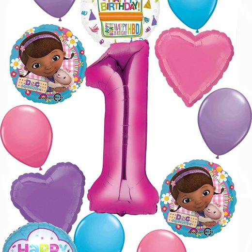Doc McStuffins Party Supplies 1st Birthday Balloon bouquet Decorations 13 piece kit