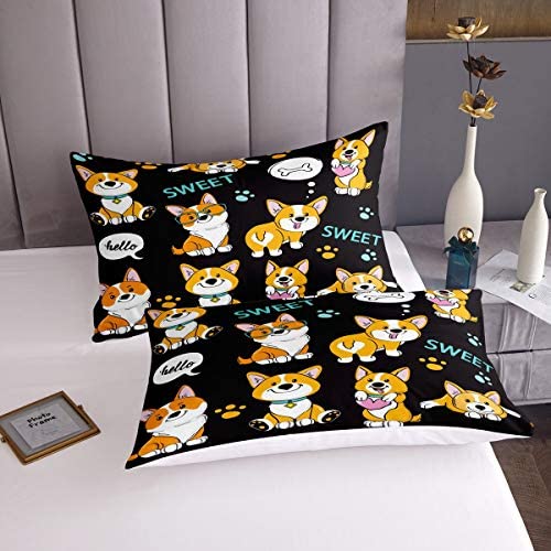 Dog Bed Sheet Set Puppy Dog Bedding Animals Fitted Sheet Kids Boys Girls,Cute Shiba Inu 2 Pieces Bedding Set Corgi Dog Lover Soft Luxury Bed Cover (Pastel Yellow Brown Dog Paw Print,Twin Size)
