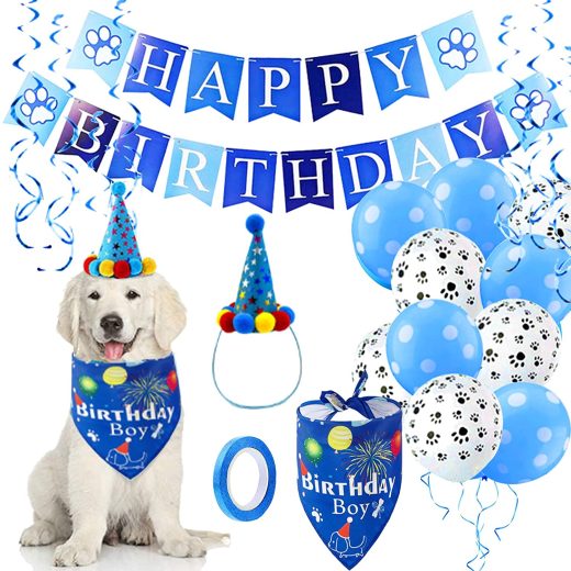 Dog Birthday Party Decorations Supplies – Dog Birthday Bandana Birthday Hat Happy Birthday Banner Dog Paw Balloons and Hanging Swirls for Puppy Dog Birthday Party Favors