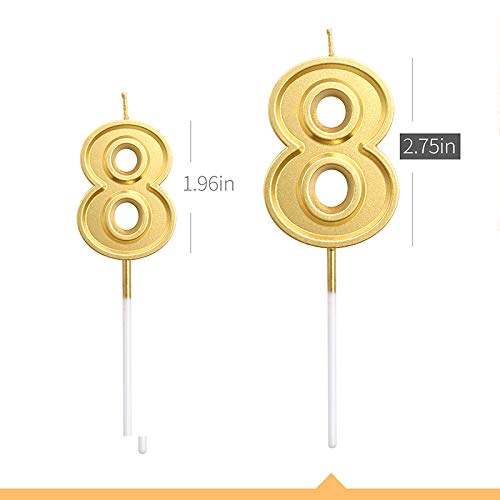 Dollet 2.75u201d Big Gold Birthday Candle Numbers 8 Cake Candle Topper for Kidu2019s/Adultu2019s Birthday Party