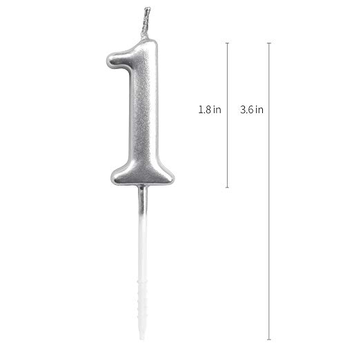 Dollet Silver Birthday Candles Number 1 Cake Topper Decoration Glitter Candle for Party Anniversary Kids Adults