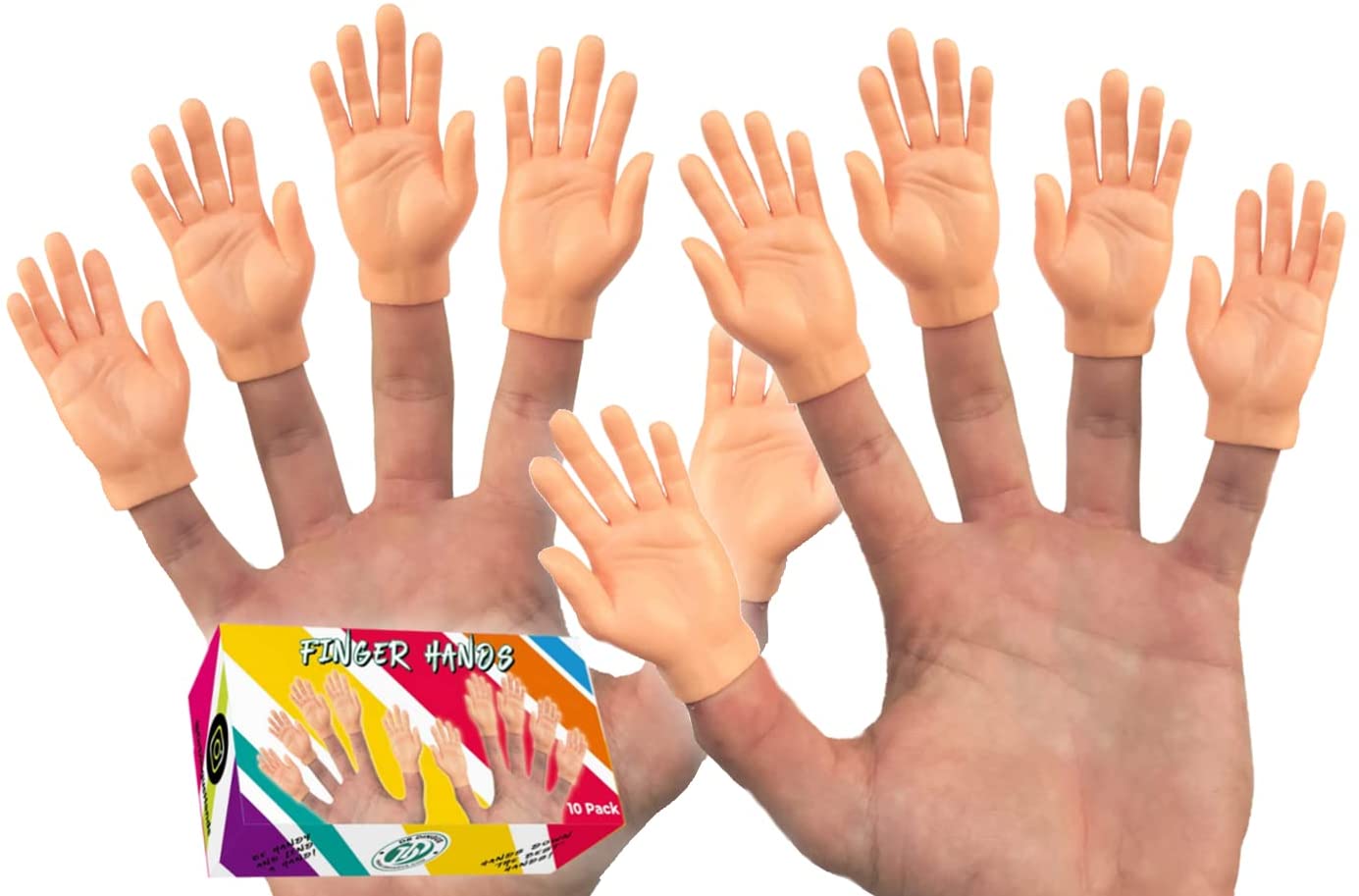 DR DINGUS Finger Hands (10 Pack w/ Gift Box) u2013 Premium Rubber Little Tiny Finger Hands u2013 Fun and Realistic Design u2013 Ideal for Puppet Show, Gag Present, Fun for All Kids!