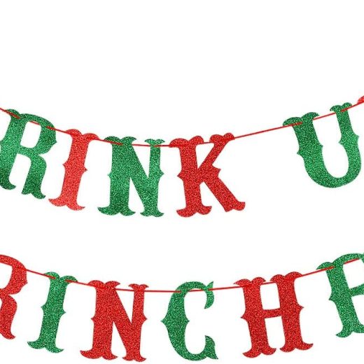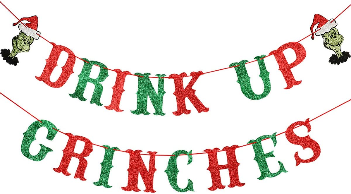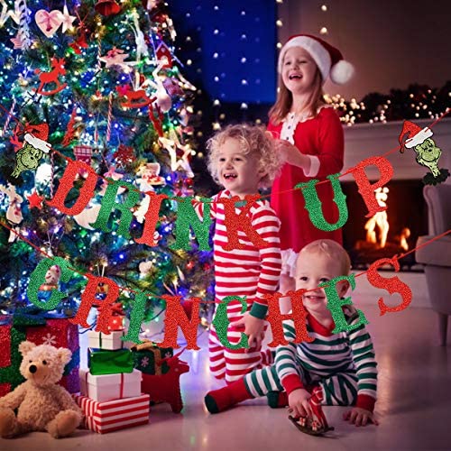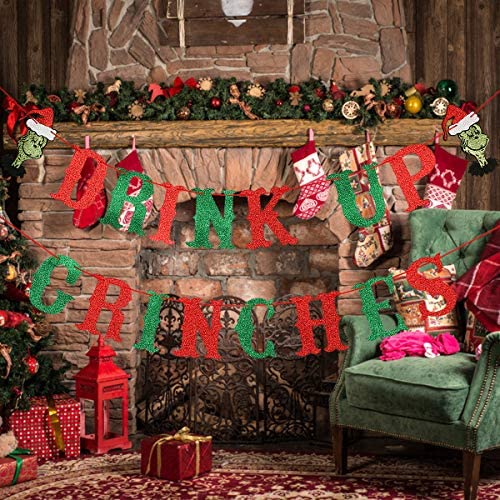 Drink Up Grinches Banner Red and Green Glitter- Christmas Party Supplies, Grinch Christmas Decorations, The Grinch Christmas Decorations, Grinch Backdrop, Grinch Decorations for Home Office Mantel