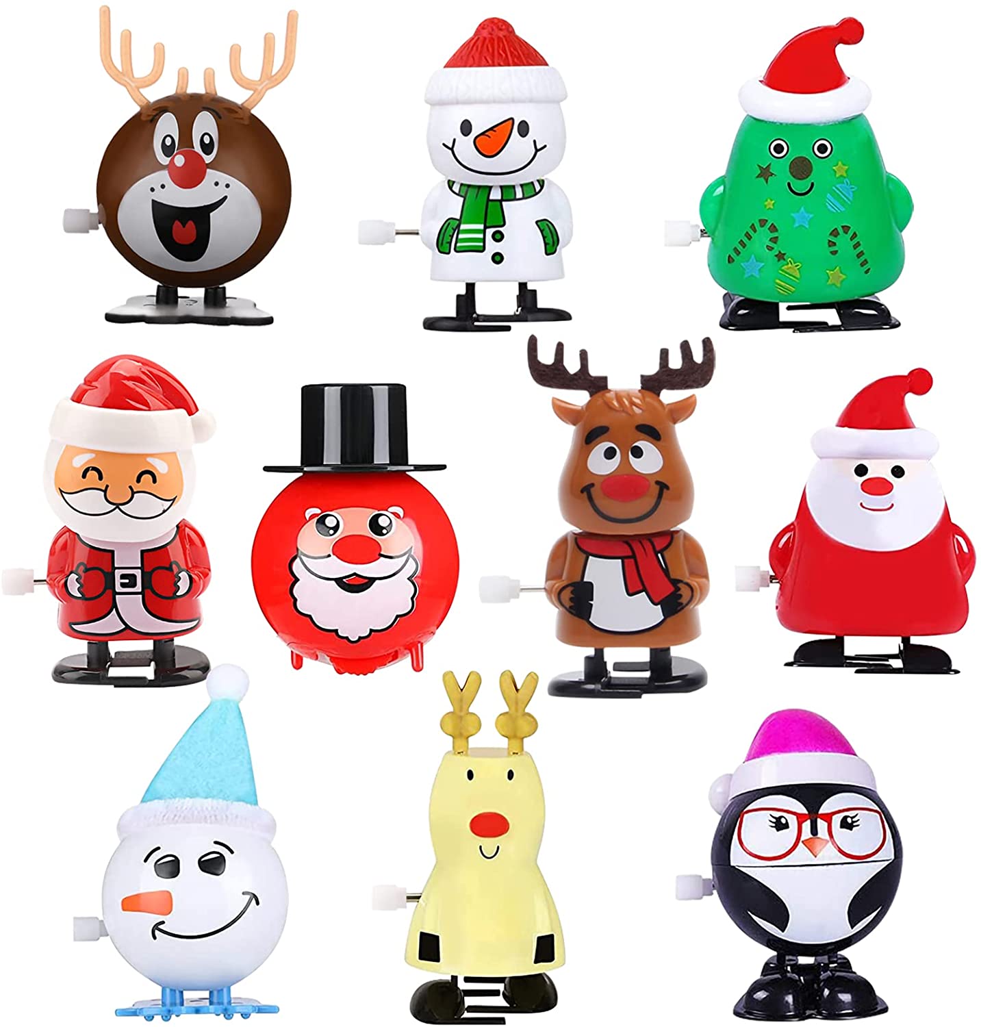 10 PCS Wind Up Toys Pack:This Christmas wind up toy set includes 10 different popular Christmas characters, such as Santa Claus, snowman, elk, peng…