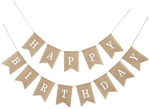 EBTOYS HAPPY BIRTHDAY Burlap Bunting Banners Party Flags Garland Birthday Party Supplies