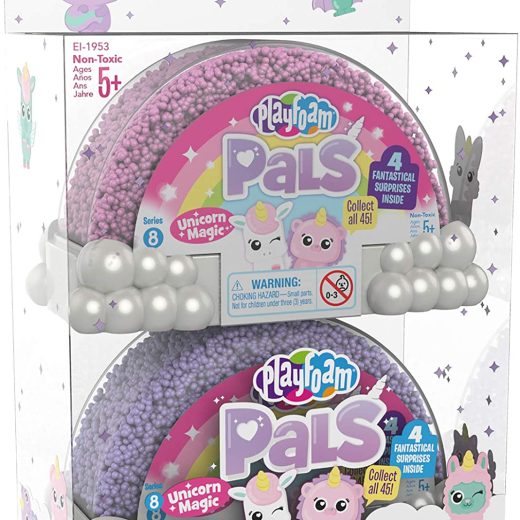 Make some Playfoam magic with Playfoam Pals Unicorn Magic collectibles! Each set includes squishy, squashy, heart studded Playfoam; a mystery unicorn charm; a mystery-colored locket with surprise clip shape; a mystery decorative gem; and a collector’s guide. Pop open the rainbow to reveal the heart-studded Playfoam and the four magical Playfoam collectibles hiding inside – then use the Playfoam to create clouds, perches, and other play props perfect for pretend play fun. Non-toxic Playfoam never dries out so the fantastical fun never ends – plus its super for sensory play!