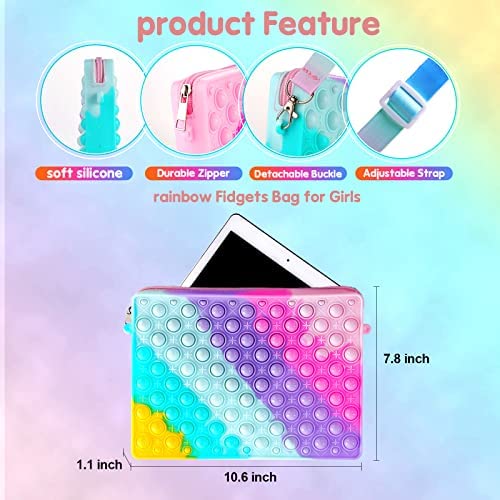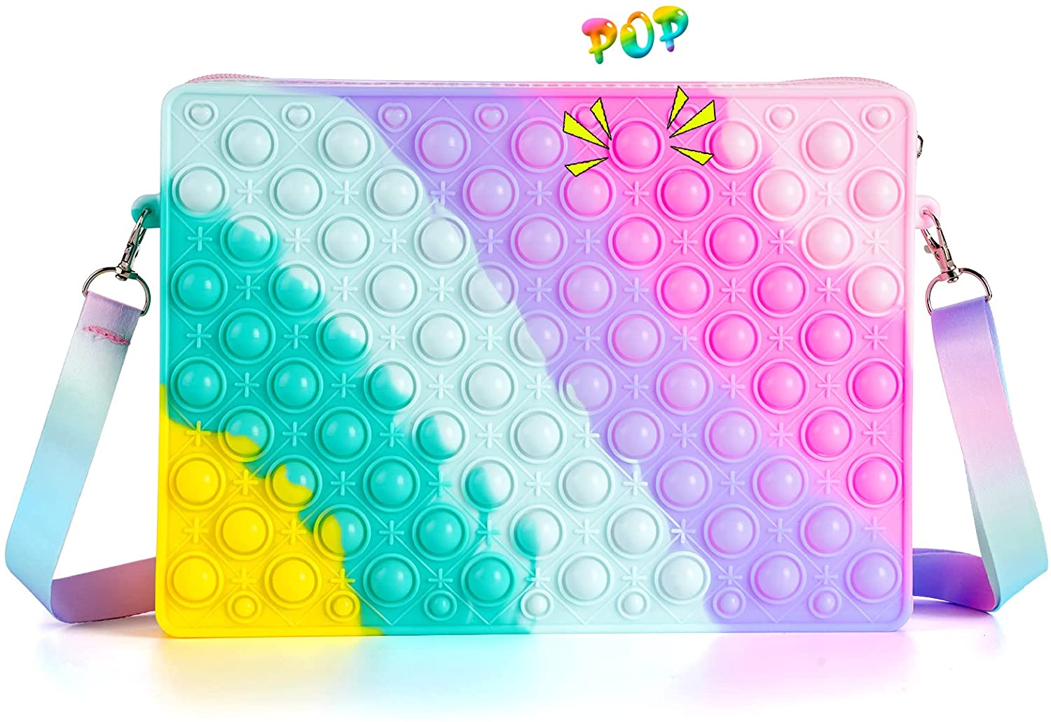 Effacera Pop Purse for Girls Women, Pop Bubble Bag Fidget Toys, Rainbow Big Pop Shoulder Bag for iPad, Christmas Party Favors Crossbody Handbag, Valentines Back to School Gifts for Kids