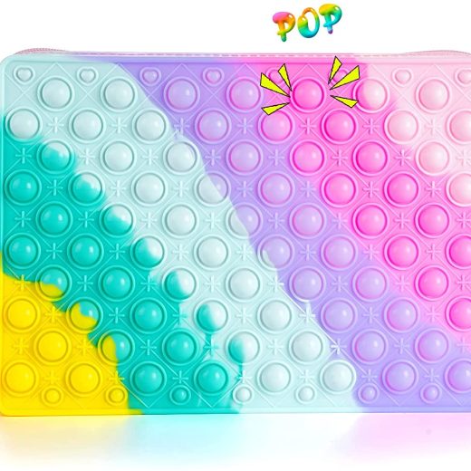 Silicone 2 in 1 Popper Bag Toy The novel color design of the fidget shoulder bag combines push bubble toy with pop change purse bag. Press the pop bubbles down, the bubble fidget toy bag make a “pop” sound, suitable for those suffering from ADHD, autism, anxiety, etc Enough Capacity Big Pop Purse: Large pop shoulder bag is 10.6*7.8*1.1 inch, Pop bubble purse bag has enough space for your iPad, coin, paper money, key, cosmetics, cellphone and other necessities. The pop Crossbody Handbag is lightweight and easy to carry. It can be carried with you when go shopping, traveling, and to school Widely-Used Pop Shoulder Bag: Our Rainbow pop wallet has numerous functions. It is suitable for iPad, keys, tissues, Bank cards, pop fidget toys. You can play the pop the bubbles to relieve stress Safe Premium Material: Pop shoulder bag is made of high-quality silicone material, with a smooth rubber surface, soft button, reusable, not easy to damage. The pop fidget toy bag is easy to clean, durable, no smell and waterproof Perfect Gift: Our fidget crossbody purse is suitable as school supplies and party favors for your kids. The popper purse is a best gifts for girls, mom, women, kids on birthday, Christmas gifts, anniversary, party, etc