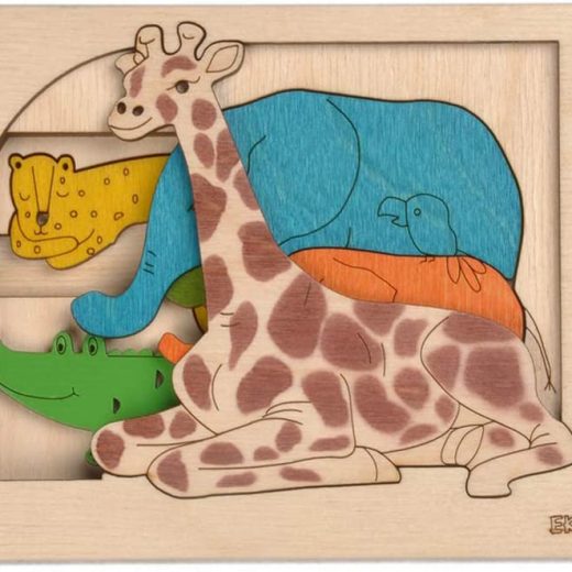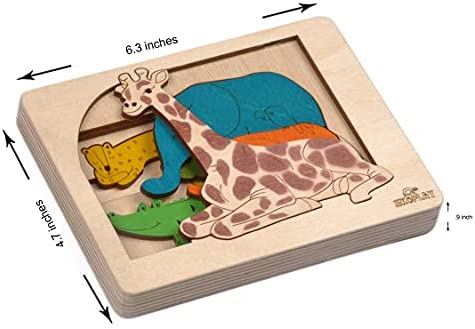 EKOPLAYu2019s Multi Layered Wooden Puzzles for Kids, 6 Piece Jigsaw Puzzle for Pre-School Kids, Learning Educational Toys Gifts for Boys Girls. Animal Puzzle Sets, Jungle Animals.