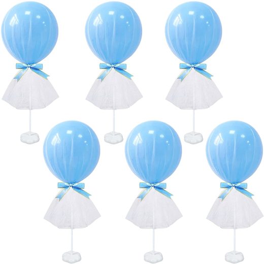 Elecrainbow Blue and White Party Decoration,6 Pack Tutu Tulle Balloon Centerpieces Set for Baby Shower, I AM ONE Party, Boy Birthday, Gender Reveal,44 Units