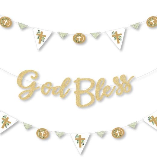 Elegant Cross – Religious Party Letter Banner Decoration – 36 Banner Cutouts and No-Mess Real Gold Glitter God Bless Banner Letters
