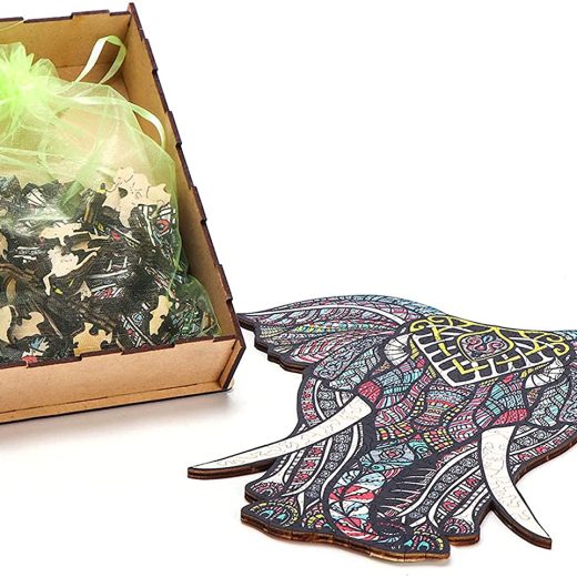 Elephant Wooden Jigsaw Puzzle Childrens Family Creative Gift to Promote Family Harmony Increase Childrens Hands-on abilities with Wooden Storage Box 10.2 inches x 10.6 inches