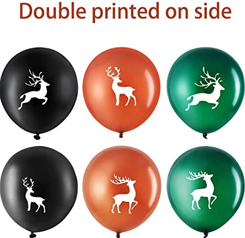 Elk Buck Deer Party Balloons Set, Includes 48 Pieces Woodland Latex Deer Balloon and 2 Rolls Black Band for Deer Party Favor Supplies Decoration Lumberjack Camo