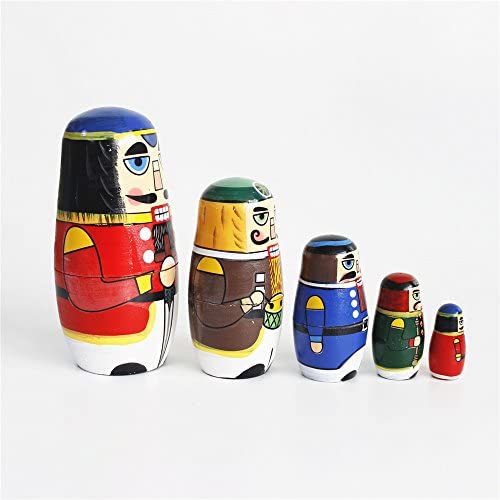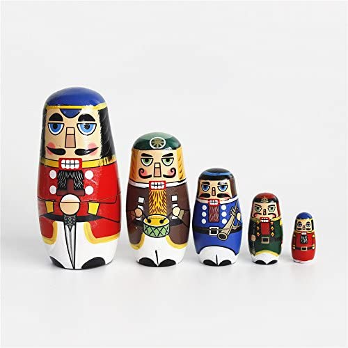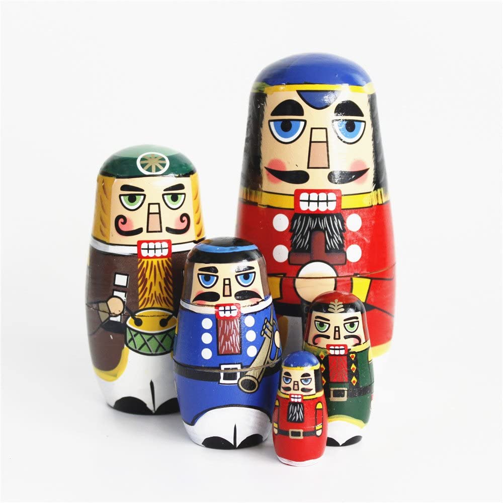 Elloapic 5 Layers Handmade Wooden Nesting Doll Russian Doll Kits Colorful Decoration Kids Gift Birthday (Walnut Soldiers)