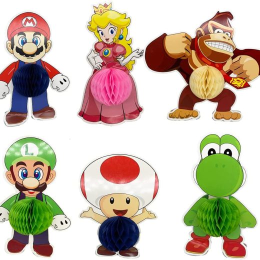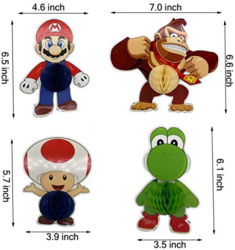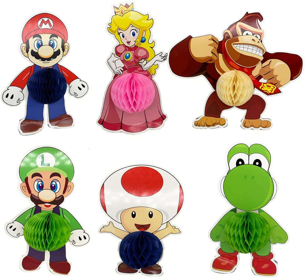 ELSANI Mario Honeycomb Centerpieces, Super Table Topper for Birthday Party Decoration, Double Sided Cake Topper, Party Supplies for Kids, Photo Booth Props