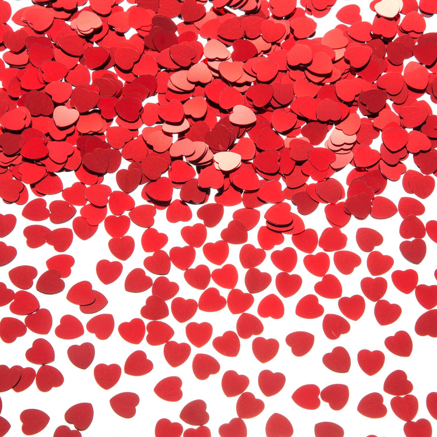 EMAAN Small Confetti Metal Foil Love Sequins, Cute Romantic Red Heart Confetti, Embellished, Wedding Party Decorations and Table Decoration Diameter 10MM (Red)