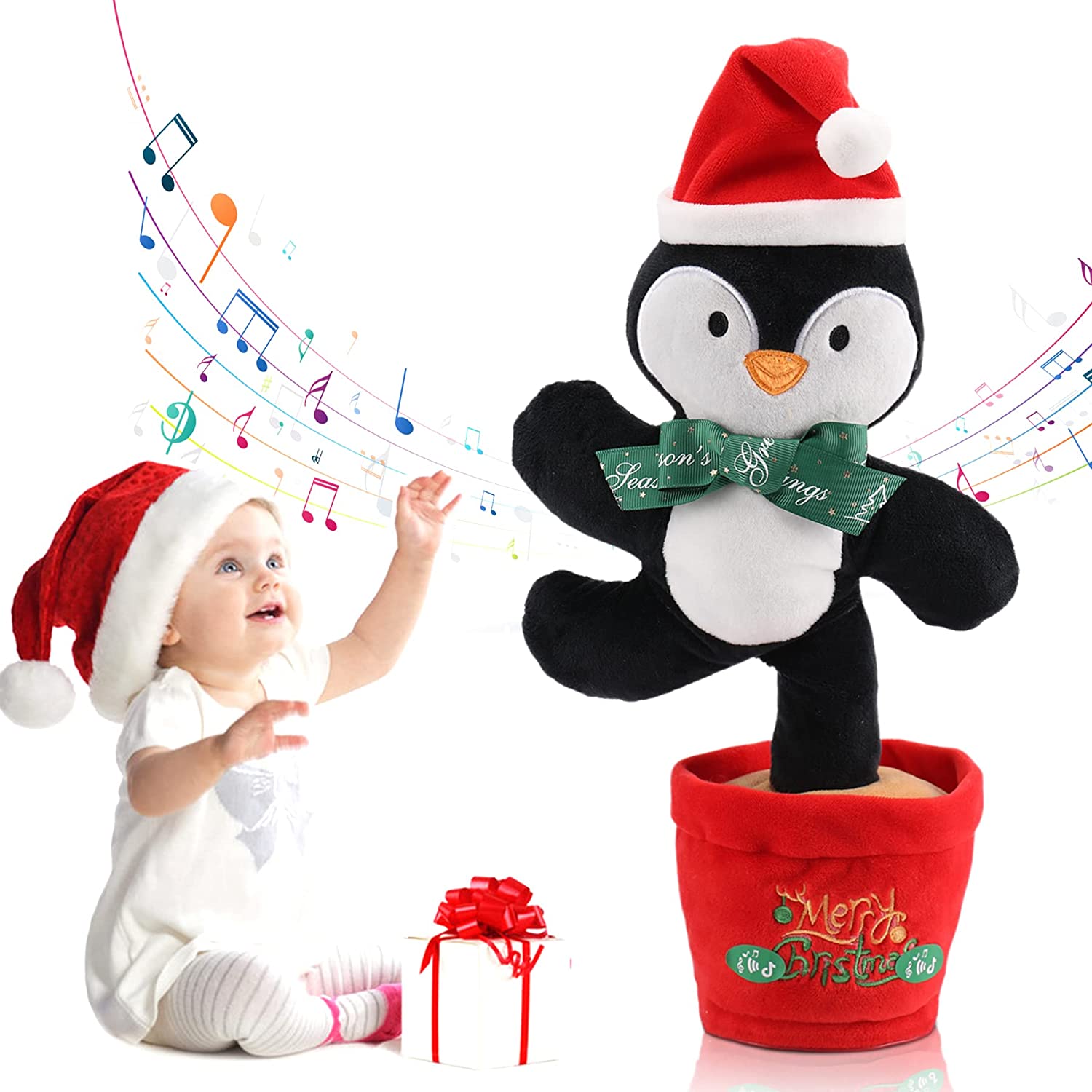Emoin Dancing Mimicking Toy Toy Christmas Plush Penguin Toys Musical Toy Stuffed Animal Talking Toy for Babies,Kids
