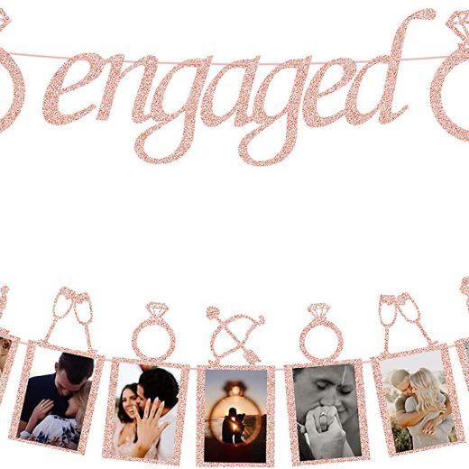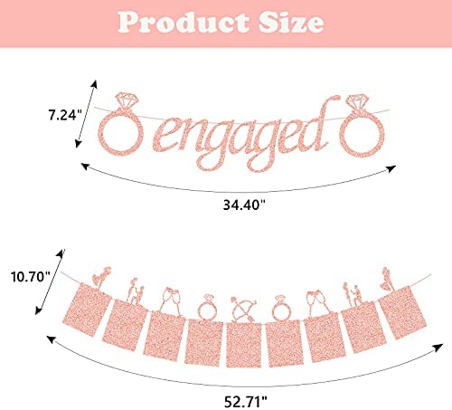 Engagement Wedding Decorations, Rose Gold Engaged Banner and Photo Banner for Engagement/Wedding Party decor(Rose Gold)
