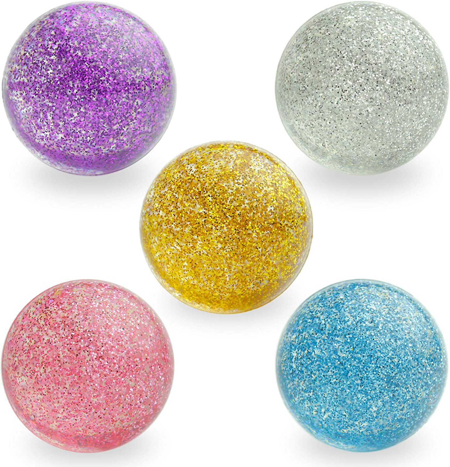 Bouncy balls for kids come in 45 mm – 1.77 inch size. Each bouncy ball has a different color and full of glitter inside – a great choice as party f…