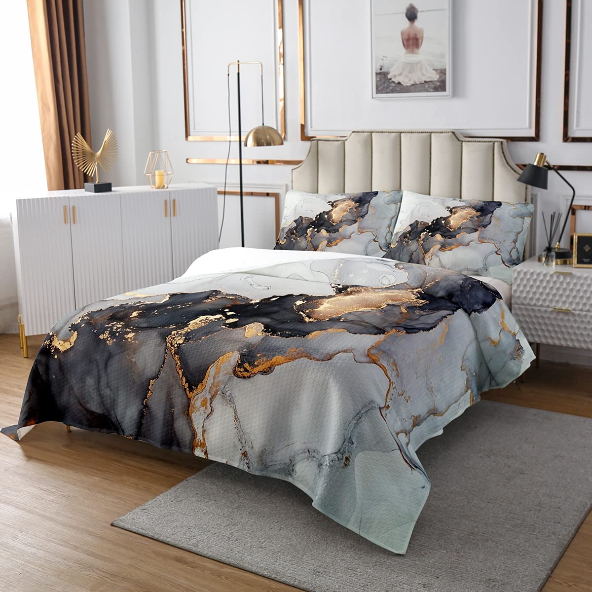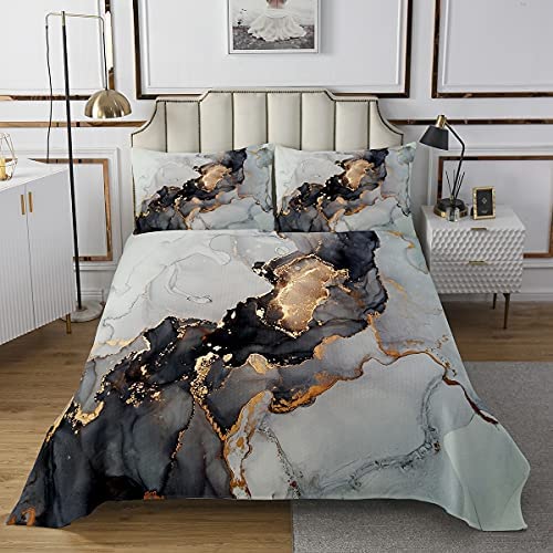 Erosebridal Black Marble Bedspreads Queen,Black and Grey Marble Coverlet Set Men Teens Boys Modern Gray Orange Abstract Art Tie Dye Quilt Set Gothic White Gold Marble Bedding Set Soft Durable