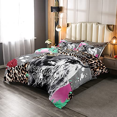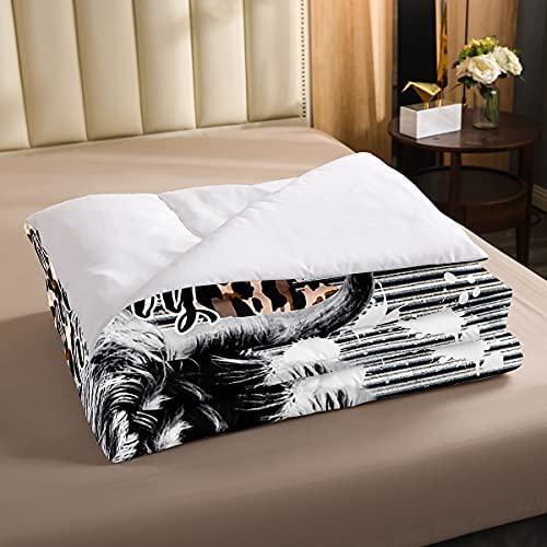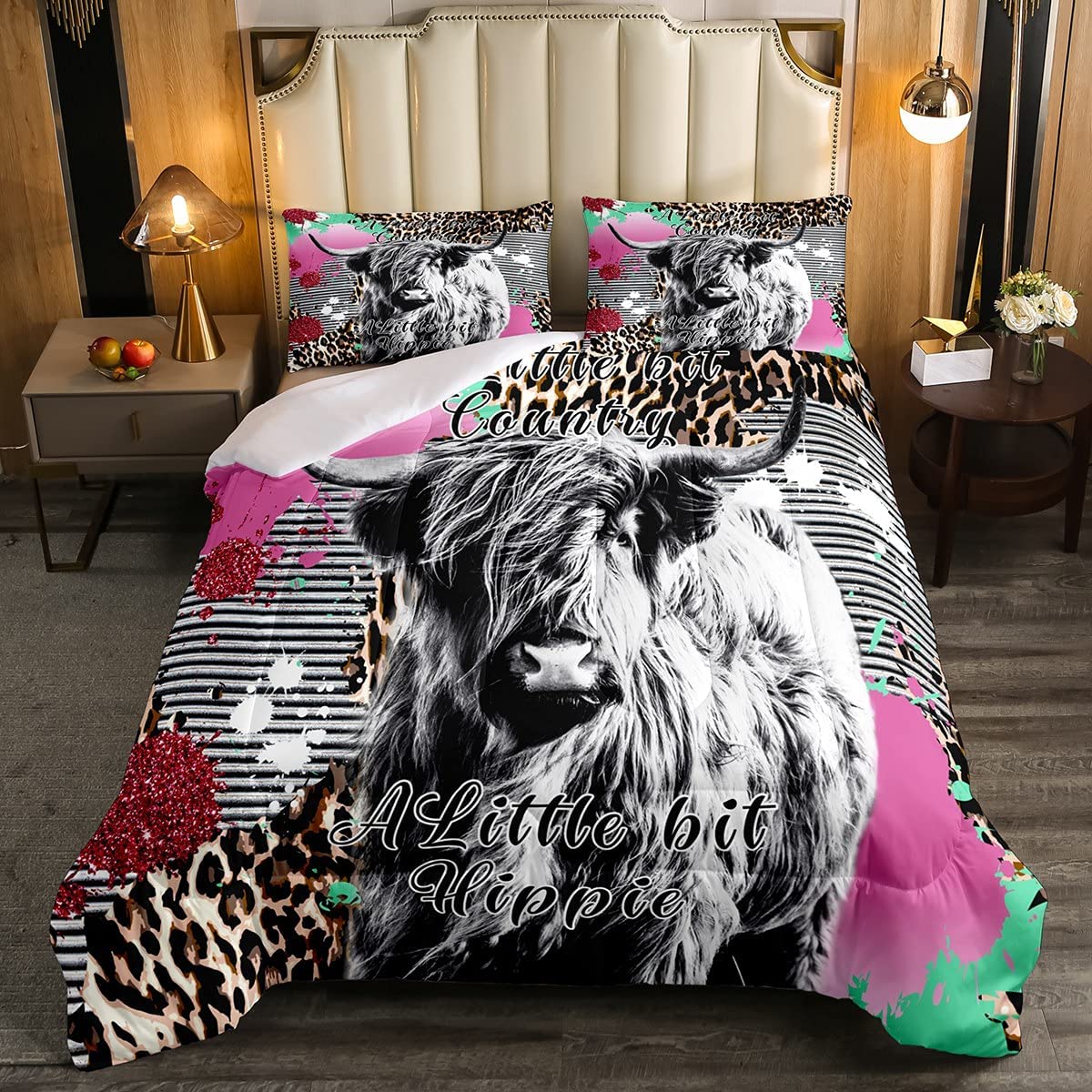 Erosebridal Highland Cow Bedding Set Cheetah Print Duvet Stuffing for Boys Teens,Hippie Bull Cattle Comforter Set Wildlife Farmhouse Cow Bed Quilt,Western Funny Animal Room Decor Full Size