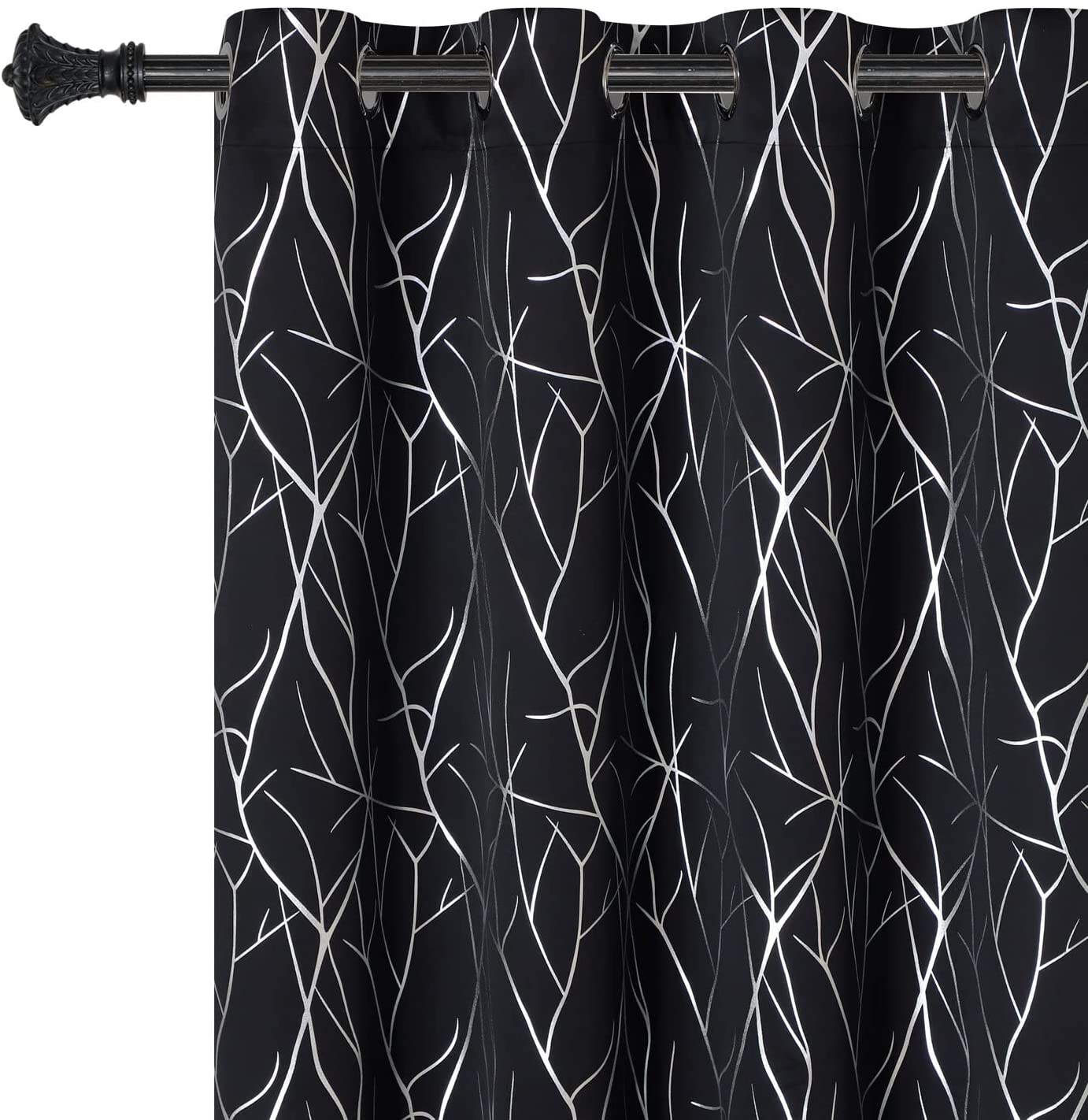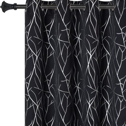 100% Polyester Imported PACKAGE INCLUDES: Each package includes 2 blackout panels and 2 tassel ropes. Each panel measures 52W x 54L inch with 8 silver anti-rust grommets (1.6 inch inner diameter) CHARMING DESIGN:Modern aesthetic original tree branches was designed on these blackout drapes, adorn your windows more natural, elegant and sparkly. Which perfect for bedroom, living room, kids room,dining room and nursery. BLACKOUT: These blackout curtains block out 85-99% sunlight and UV rays. Owe to the triple weave technology, which make them thermal insulated, soundproof, energy efficient. Offer you a better afternoon nap or morning sleep-in (Dark colors work better). AMAZING MATERIAL: These thick and soft tree branch printed room darkening curtain panels are very upmarket and made of 100% imported high quality polyester. Ensure the hand touch silky and has a pleasant feel to it that complements most decor. HASSLE FREE: 30 days money back guarantee on return policy. Machine washable for easy care. Wash separately under 86 F, not bleached, iron at low temperatures.