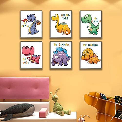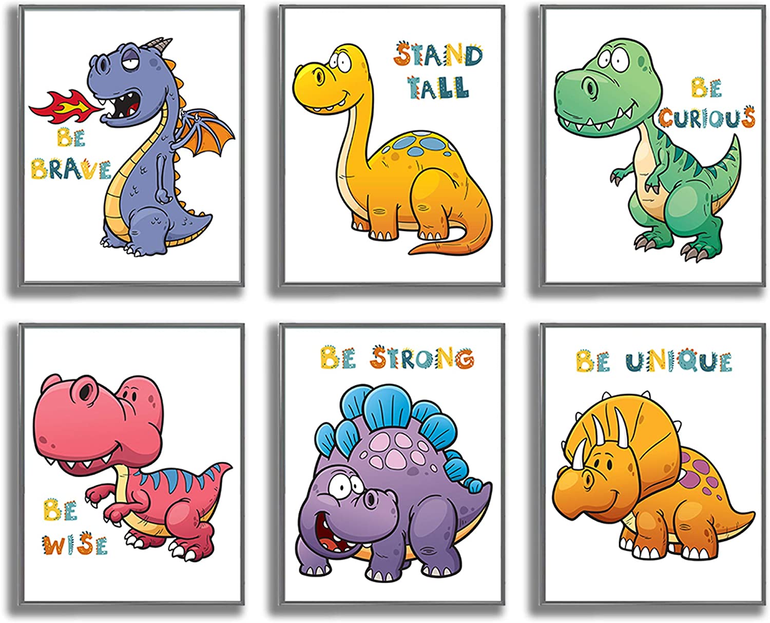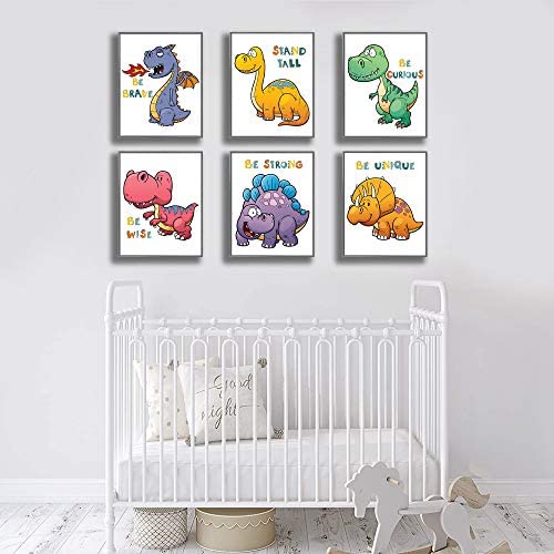 ETIUC Dinosaur Nursery Wall Art Prints for Boys & Girls Bedroom Set of 6 8x10in Unframed Motivational Quotes Baby Kids Room Playroom Safari Animals Wall Decor Jungle Zoo Room New Born Baby Prints