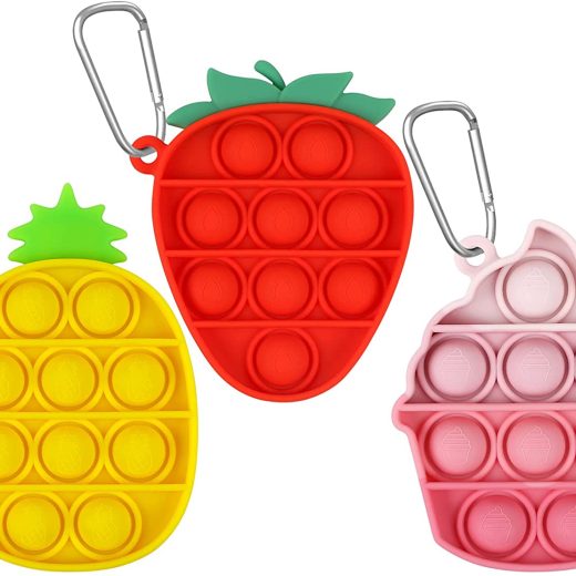 Mini Pineapple Ice Cream Stawberry Simple Fidget Toys,Push Pop Bubble Fidget Sensory Toy Keychians.Everyone Needs Stress Reliever. Features: Ever catch your friends, or maybe even yourself, popping the bubble wrap right of the box of a package Then youll love this bubble fidget toy. Relieve stress: Just press the bubbles down and they make a slight popping sound; then flip it over and start again! Endlessly reusable and washable, too. Material:Silicone How to play: 1 Players take turns pressing down any number of bubbles they wish in a single row. 2 The player who presses down the last bubble loses the round. 3 Whoever wins two of three rounds wins the game! Its as simple as that! Novelty gifts for boys girls parent friends and autism. Package include:3 Pack Push Pop Bubble Sensory Fidget Toy Keychains in Pineapple Ice Cream Stawberry Designs