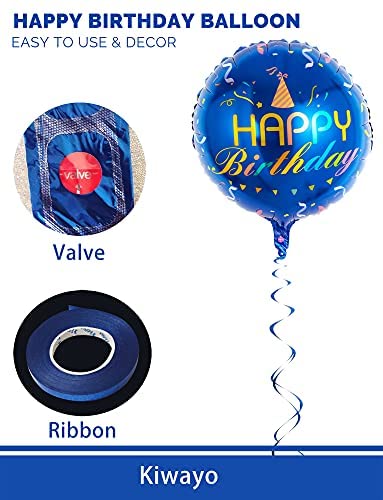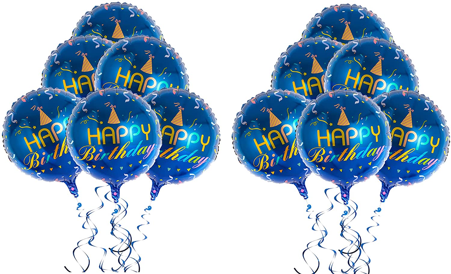 EXCLUSIVE HAPPY BIRTHDAY BALLOONS: Special design chic happy birthday pattern mylar foil balloons! Use this exclusive balloon decoration to make your birthday party special right away! DURABLE MATERIAL & GOOD QUALITY BIRTHDAY BALLOONS: These happy birthday balloons are made of quality aluminum foil material. SELF SEAL AFTER INFLATED: For decorating a birthday party, our happy birthday foil balloon is easier to use than latex balloon, this foil balloons will self-seal after being inflated, while latex balloons need to be knotted manually; INFLATE & DEFLATE: There is a valve on the balloon. This fol balloon can be inflate by helium or air. LETS CELEBRATE EVERY BIRTHDAY!: Whether 13th,16th, 18th, 20th, 21st, 30th, 40th, 50th, 60th, 70th, 80th, 90th or 100th birthday! Every birthday deserves to be commemorated, this birthday balloon is a good choice for birthday party. VALUE BIRTHDAY BALLOONS PACKAGE – 12pcs blue happy birthday foil balloons & ribbon. PLEASE PURCHASE WITH CONFIDENCE: If the balloon has any quality problem, please contact us!
