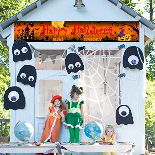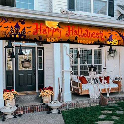 Large Happy Halloween Banner Extra Large Halloween Yard Fence Banner Sign for Halloween Party Decorations Supplies Outdoor Indoor