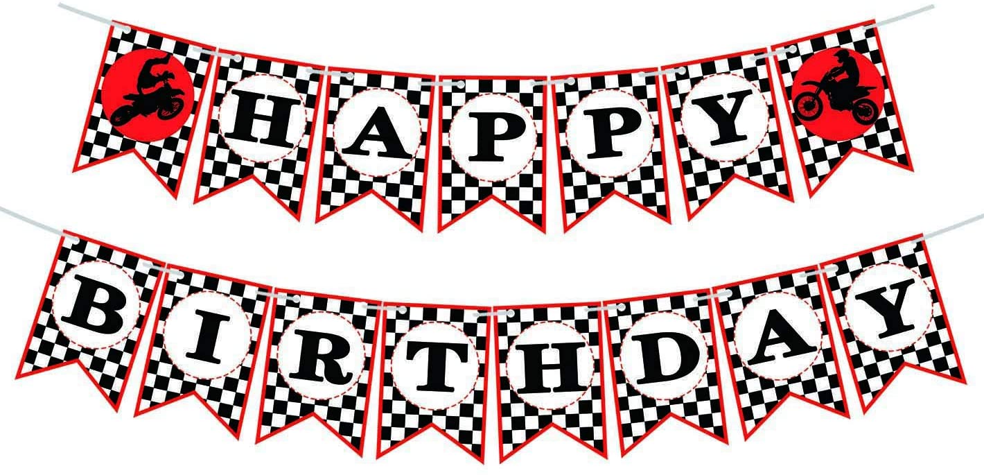 Extreme Motocross Happy Birthday Banner Motocross Birthday Party Supplies Decorations Tire Track Dirt Bike Racing Birthday Hanging Decoration