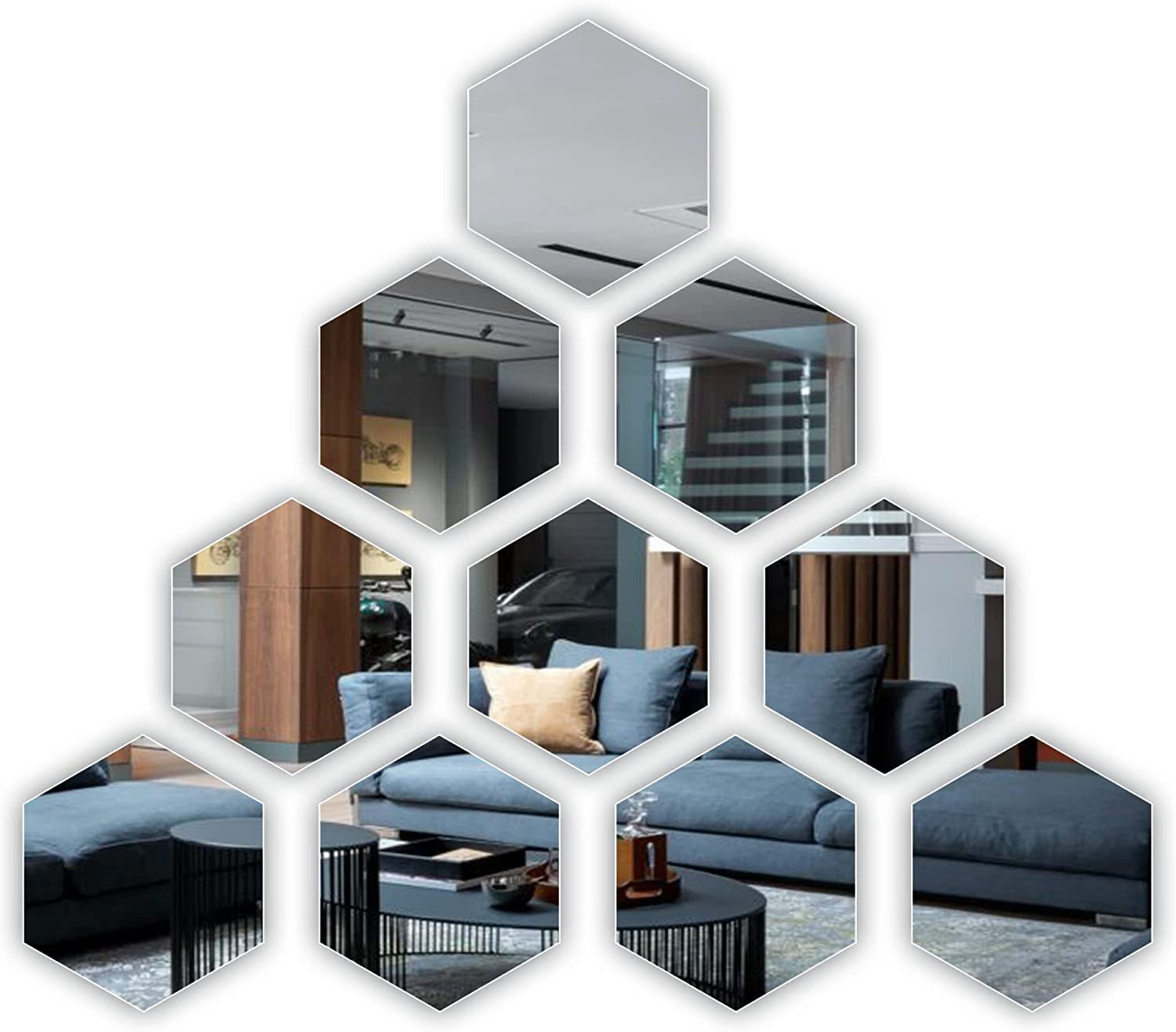 EZELOFT Mirror Wall Sticker Room Decor Hexagon 7.2 x 6.3 3.6 (16 pcs) Cute Girls Decorative Tile Kids Plastic Kitchen Island Decorations Acrylic Décor