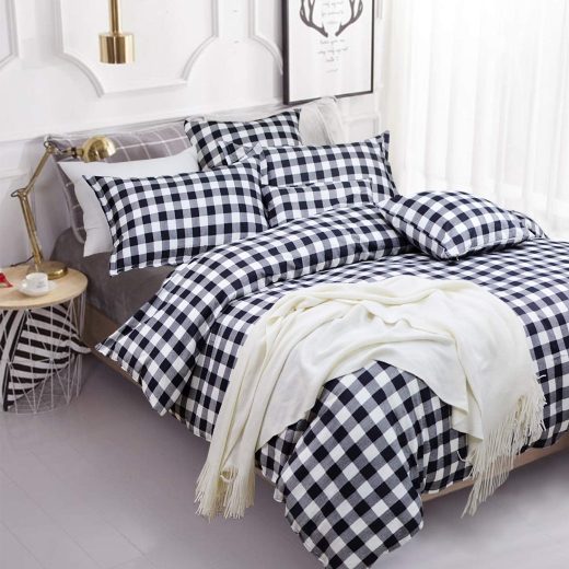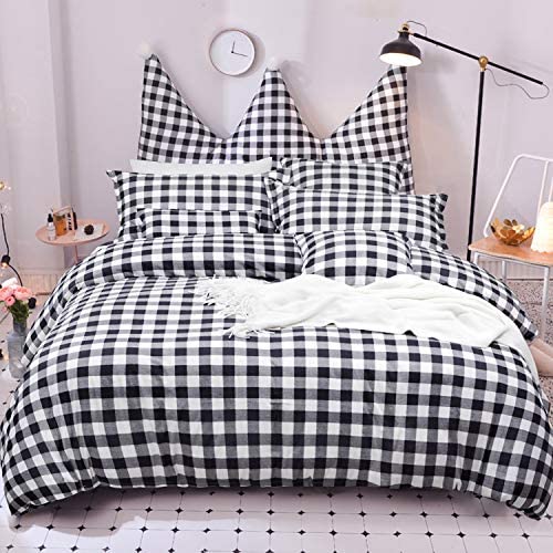 Size Queen Included Components Pillowcase, Duvet Cover Material Cotton Color Black/White Theme Geometric,Plaid