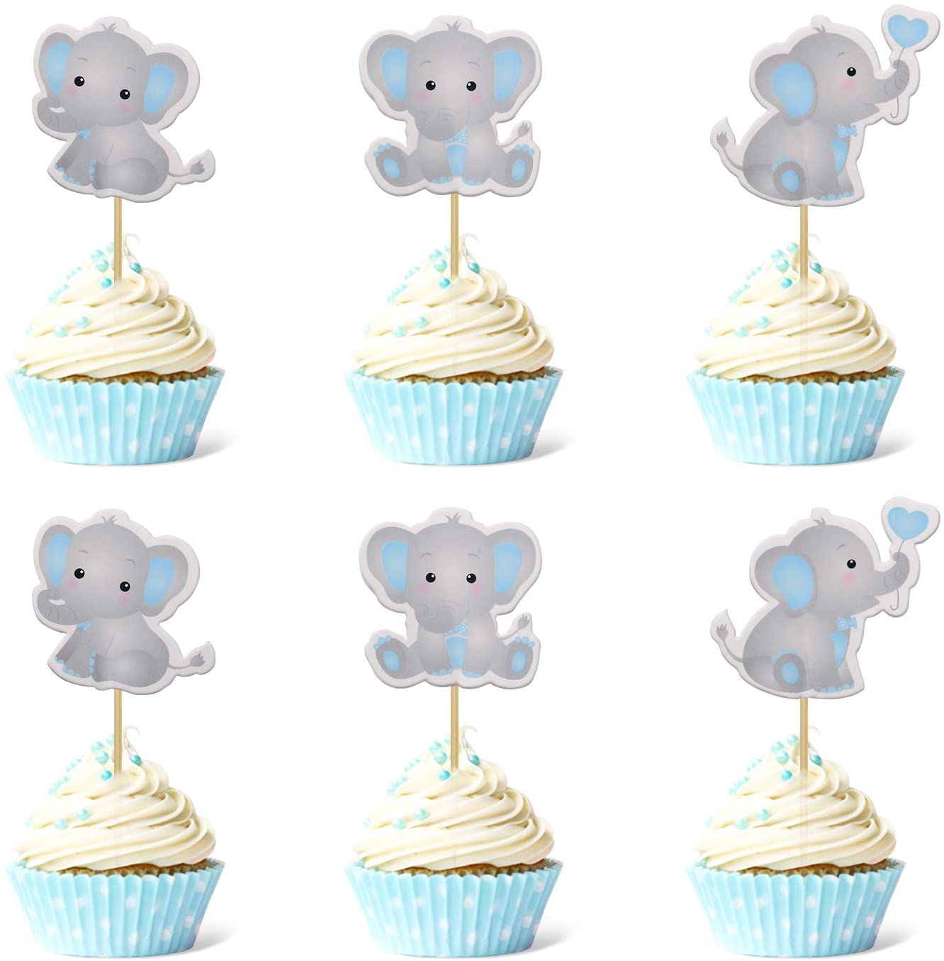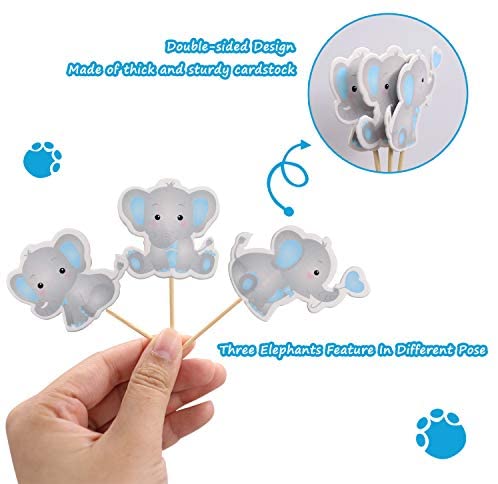 Faisichocalato 48pcs Blue Elephant Cupcake Toppers It is A Boy Baby Shower Cupcake Picks Decoration Baby Boy Birthday Party Supplies
