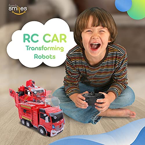 Family Smiles Transforming Robot and Fire Truck Has Xenon Style LED Headlights With Exciting Sounds | Creates Realistic Sounds When Remote Control Toy Transforms & Deforms And While Driving | Robot Dance Mode