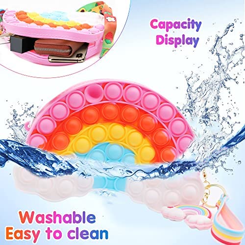Fancystyle Pop Fidget Toys Shoulder Bag,Rainbow Clouds Pop Fidget Purse for Kids Birthday Gifts,Sensory Stress Relief Crossbody Handbag Party Fidgets Gifts for Girls (Rainbow Bag)