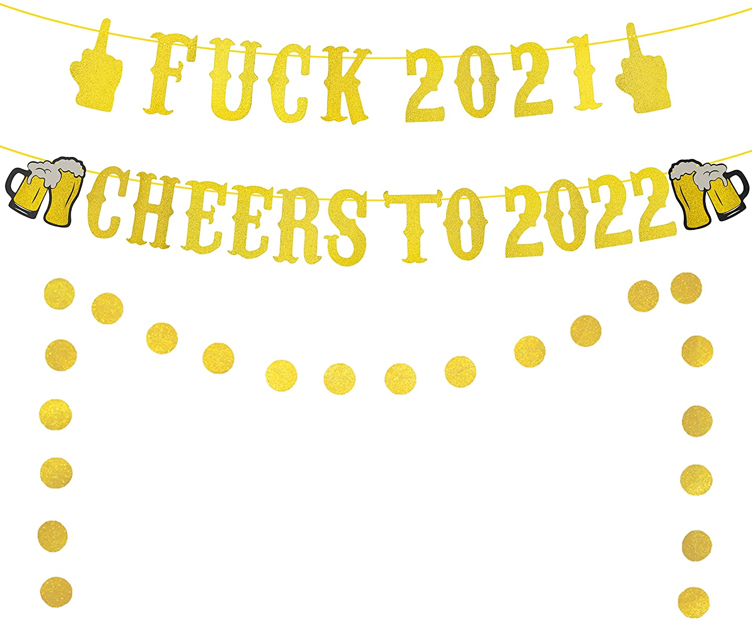 Farewell 2021 Cheers 2022 Banner,Gold Glittery New Years Eve Party Decorations 2022,New Year Decorations,Happy New Year Banner,New Years Fireplace Mantle Home Decorations,Hello 2022 New Year Banner